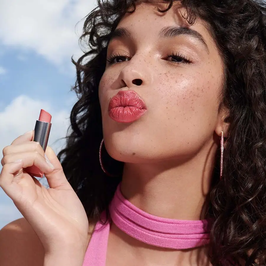 Këshilla për aplikimin: Aplikoni buzëkuqin duke filluar nga zemra e buzëve.