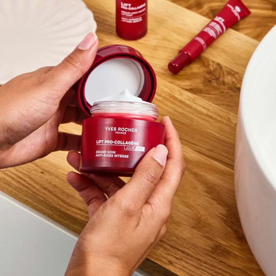 Kremi ditë/natë Lift Pro-Collagene është një trajtim i plotë kundër rrudhave. Falë formulës së tij të koncentruar me Ficoïde Glaciale, kolagjen bimor dhe acid hyaluronic, rrudhat zbuten dhe reduktohen ndjeshëm. Lëkura është e butë dhe e ushqyer.