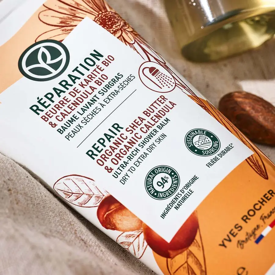Kremi i dushit pa sulfate, pastron butësisht lëkurën falë përbërjes së tij me gjalp shea dhe kalendula organike. 2/3 e përmbajtjes së kremit të dushit është me vajra bimorë. Dushi kthehet në një moment relaksi dhe lëkura e thatë dhe ajo ekstra e thatë ushqehet, zbutet dhe mban një aromë të mrekullueshme.