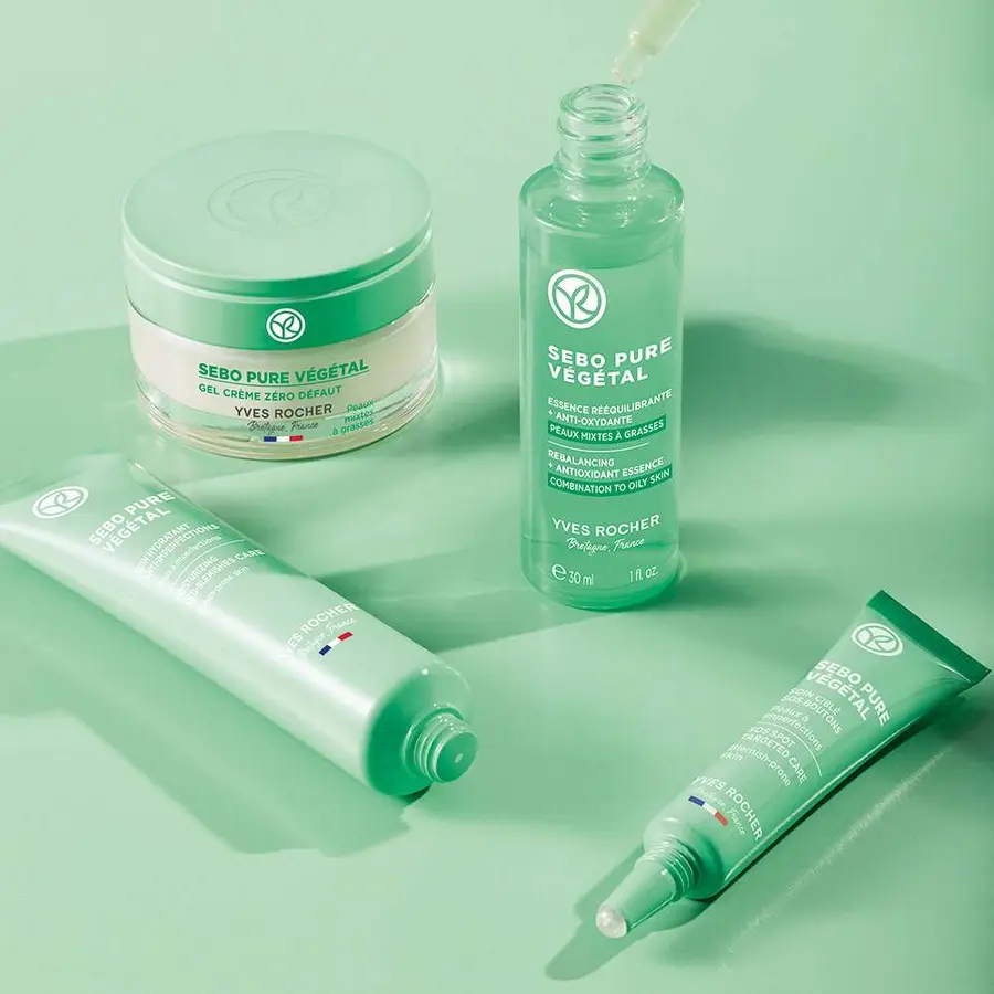 Serumi Sebo Vegetal ka në përbërje të tij pluhurin e çajit boreal dhe acid salicilik. Pluhuri i çajit Boreal ka veti ribalancuese. Ai vepron në thellësi të lëkurës duke ruajtur balancën e duhur të sebumit në lëkurë. Acidi salicilik ka veti pastruese. Tekstura e lëkurës duket më e rafinuar, papërsosmëritë janë zvogëluar dhe poret janë më pak të dukshme.