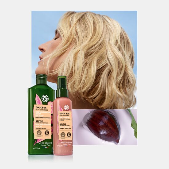 Shampoja pa sulfate dhe e pasuruar me qumësht organik të gështenjës, ushqyen dhe zbut flokët. Flokët krihen lehtë dhe rifitojnë butësinë, elasticitetin dhe shkëlqimin e munguar.