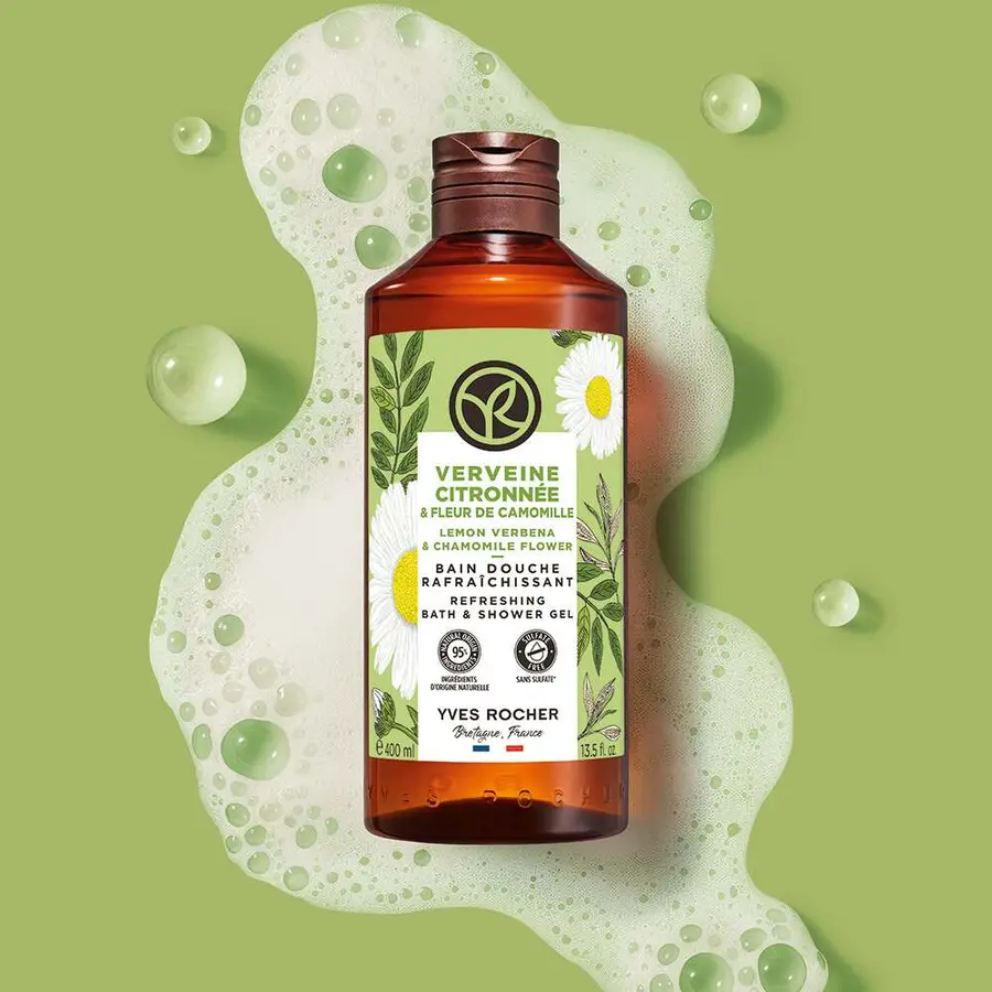 Xheli i dushit me Verbenë Limoni dhe Lule Kamomili, ju jep ndjesinë sikur jeni në mes të natyrës. Shkuma e tij e butë, pastron dhe parfumon lëkurën pa e dehidratuar atë, falë bazës së tij pastruese pa sulfate.